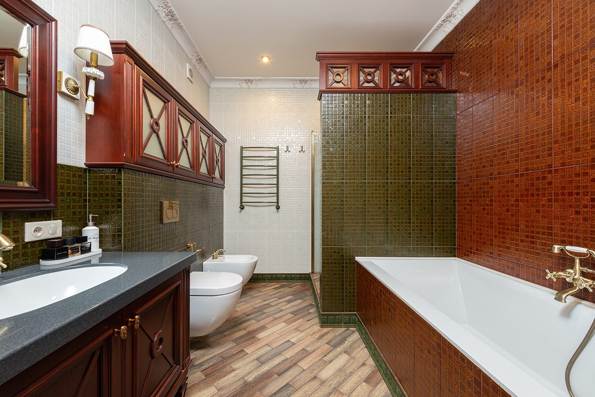 Sanitary facilities: On the ground floor: bathroom (corner bath with shower, sink, washing machine), separate toilet with sink